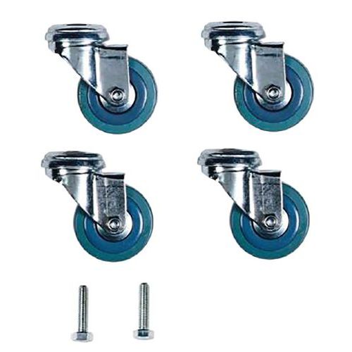 Soepele rubberen wielen met polypropyleen behuizing Ø 50 mm. Te schroeven in plaats van de verstelbare poten.