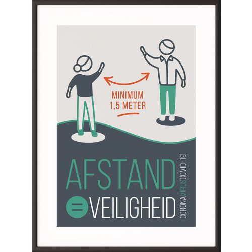 | Productnaam | Wissellijst Nederlandse tekst, Model: Houd afstand, Formaat: 50x70, Materiaal: Aluminium, Dikte: 9 mm |