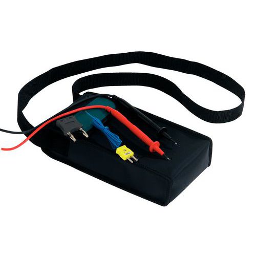 Geleverd met een set meetsnoeren met aanraakpunten, een thermokoppel, een transporttas en een gebruiksaanwijzing.