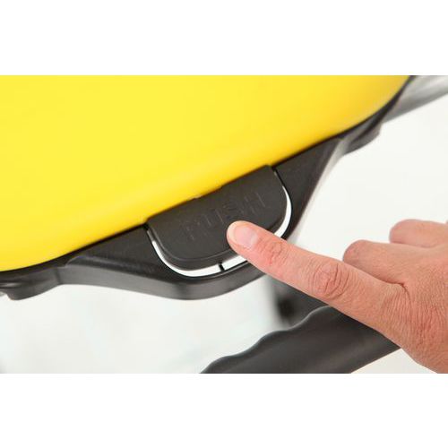 Mobiele zakhouder bestaande uit een frame van gegalvaniseerde buizen en een gekleurd kunststof deksel. Het deksel gaat eenvoudig open door op de knop Push te drukken. Deze houder is uitgerust met twee wielen van polypropyleen, voor eenvoudig verplaatsen. Geleverd met een sluitring onder het deksel en met een metalen rooster om de zak op zijn plaats te houden bij verplaatsingen.