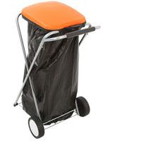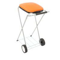 Mobiele zakhouder bestaande uit een frame van gegalvaniseerde buizen en een gekleurd kunststof deksel. Het deksel gaat eenvoudig open door op de knop Push te drukken. Deze houder is uitgerust met twee wielen van polypropyleen, voor eenvoudig verplaatsen. Geleverd met een sluitring onder het deksel en met een metalen rooster om de zak op zijn plaats te houden bij verplaatsingen.