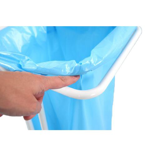 Mobiele zakhouder met geruisloze sluiting van het deksel. Ontworpen voor ziekenhuizen, professionele keukens, kantoren, enz. Zeer stabiel metalen frame uitgerust met stille, niet-strepende wielen met kogellagers (2 wielen met rem). Voorzien van een slimme zakbevestiging die zorgt voor perfecte plaatsing en eenvoudige vervanging van de zak. Glad oppervlak voor een snelle reiniging. Meerdere eenheden in combinatie met zakken in verschillende kleuren kunnen een goed zichtbaar punt voor afvalscheiding creëren.