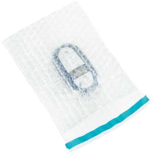 Zak met drielaags noppenfolie met zelfklevende kleppen. Soepel, vormt zich uitstekend naar alle vormen van producten. Producten eenvoudig in te steken dankzij de twee gladde oppervlakken.