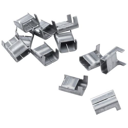 - Klem van gegalvaniseerd staal voor omsnoeringsband, geschikt voor gebruik buiten.