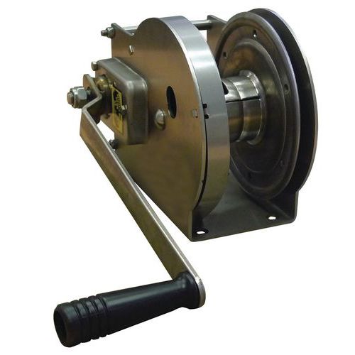 - Een extra ratel dient als valbeveiliging en werkt rechtstreeks op het ingaande wiel van de trommel.