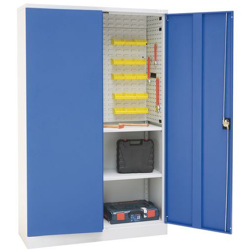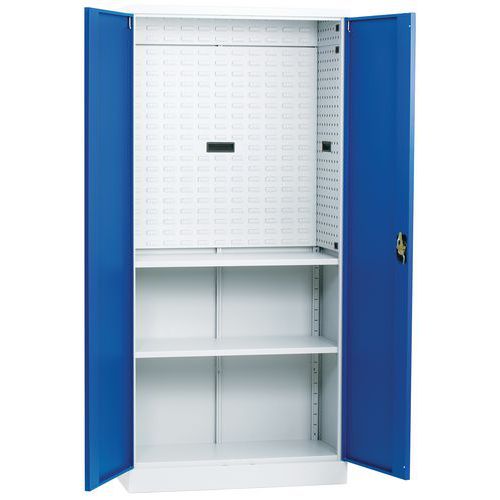 Inhoud: werkplaatskast met slot van garderobekast, 1 hoofdsleutel en 2 reservesleutels, geperforeerd paneel.