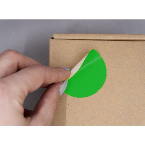 Verwijderbaar zelfklevend rondje, voor alle behoeften aan visuele identificatie in magazijnen, winkels en kantoren. De rondjes hebben verschillende kleuren, wat ze geschikt maakt voor kleurcodering om een snelle indeling en classificatie mogelijk te maken. Het rondje is compatibel met thermische printers. Deze rondjes kunnen worden gebruikt met een breed scala aan apparatuur, waardoor hun nut en toegankelijkheid toenemen. Eenvoudig los te trekken en laten geen sporen achter.