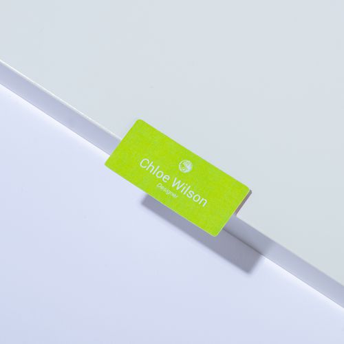 Zelfklevende badge zonder pvc voor laseropdruk. Met snijranden, eenvoudig in het gebruik. Kleeft perfect en laat geen resten achter na het verwijderen. Gemaakt in het UK