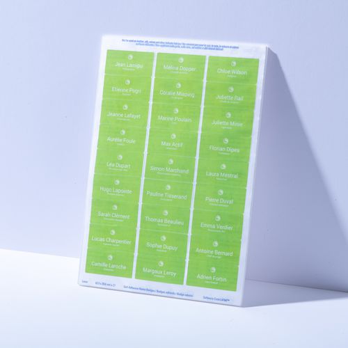 Zelfklevende badge zonder pvc voor laseropdruk. Met snijranden, eenvoudig in het gebruik. Kleeft perfect en laat geen resten achter na het verwijderen.