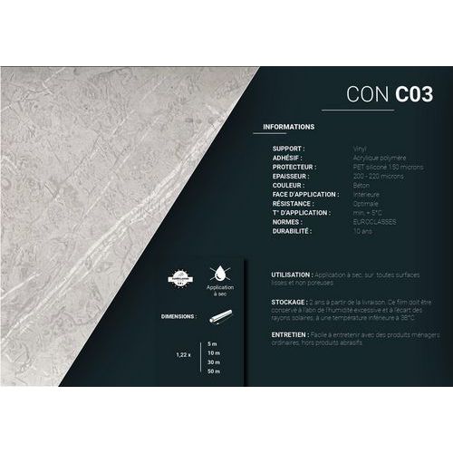 | Productnaam | Plakfolie beton CON C03, Filmtype voor glas: Decoratieve film, Kleur: Grijs, Breedte rol: 1.22 m |