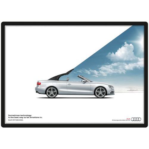 Dubbelzijdige weergave op glas dankzij het kader dat aan twee zijden te zien is.