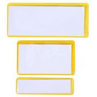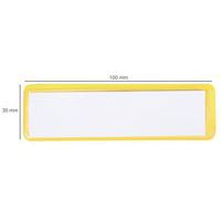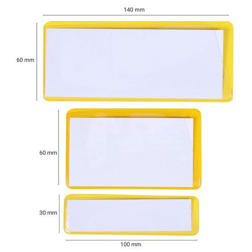 - Zelfklevende of magnetische etikethouder met gekleurde achtergrond.