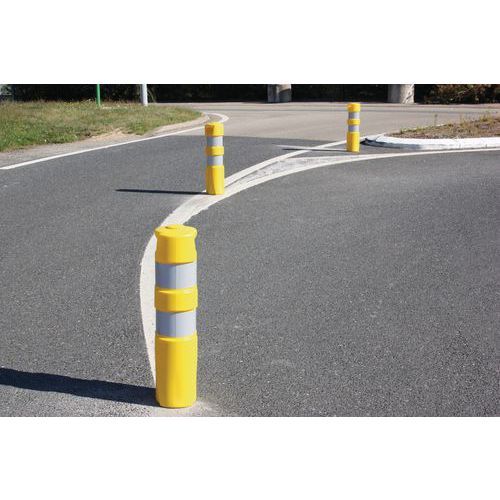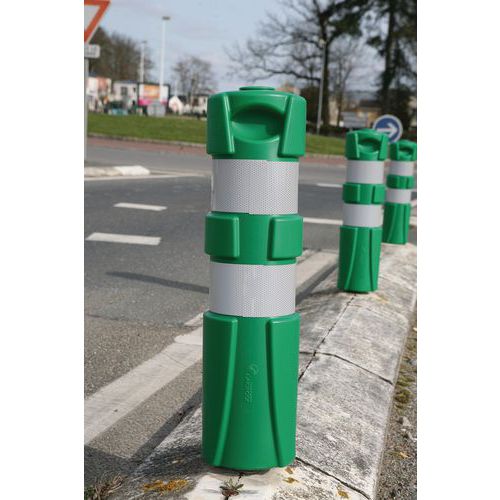 Esthetische afbakeningspaal voor op de openbare weg, met strak design en bijpassende afdichting. Zelfrichtend: polyethyleenmateriaal bestand tegen schokken en indeuken. Gemakkelijk te installeren: stabiel vast te schroeven terwijl u staat, geen gereedschap benodigd. Maximale veiligheid met 2 reflecterende banden (breedte 100 mm). Ergonomische afbakeningspaal met 2 handgrepen aan de zijkant zodat u hem beter kunt vastgrijpen. Gemaakt in de EU