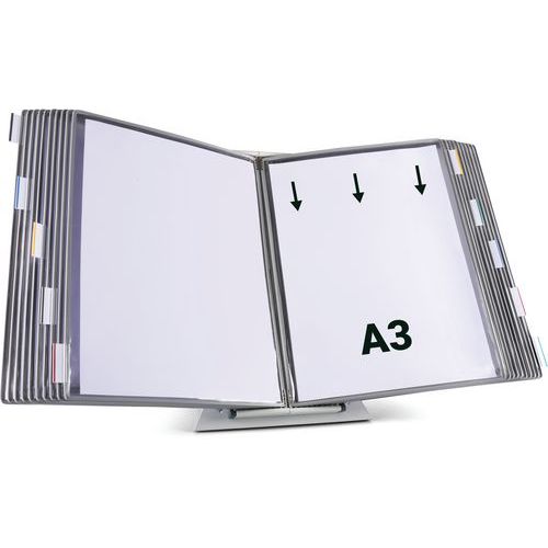 Zichtpanelensysteem wand metaal Tarifold A3 20 zichtpanelen . Metalen lessenaarpresentatiesysteem met zijstoppers en 20 draaibare A4-vakken. Beschermt en ordent al uw veelgebruikte documenten. Geeft directe toegang tot al uw belangrijke informatie. De ideale Lean-managementtool om informatie helpen structureren Uitbreidbaar van 10 tot 30 vakken. Zakken voorzien van originele, exclusieve Tarifold staaldraadtechnologie. Kan indien nodig ook aan de muur worden gemonteerd. Voor gebruik in fabrieken, supermarkten, magazijnen, kantoren, restaurants, winkels, enz. Voor het weergeven van instructies, procedures, adresboeken, catalogi, prijslijsten etc. Circulaire economie: oude geretourneerde tassen worden gerecycled! Zie voorwaarden op de site. Gemaakt in de EU Klantgarantie : 10 jaar