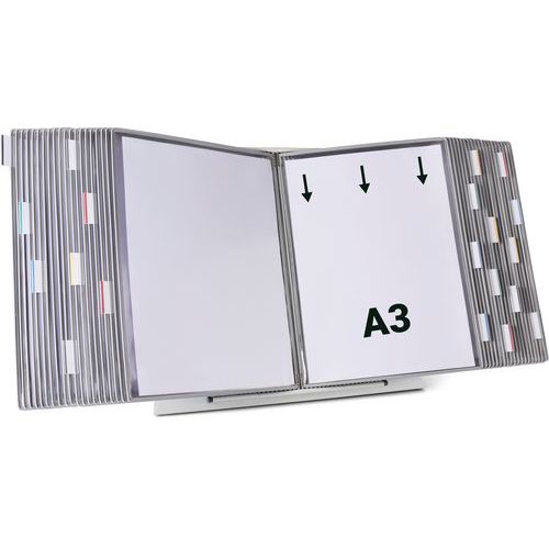 Zichtpanelensysteem wand metaal Tarifold A3 40 zichtpanelen. Metalen lessenaarpresentatiesysteem met zijstoppers en 40 draaibare A4-vakken. Beschermt en organiseert al uw veelgebruikte documenten. Geeft onmiddellijke toegang tot al uw belangrijke informatie. De ideale Lean-managementtool om informatie helpen structureren Uitbreidbaar van 40 tot 60 vakken. Zakken voorzien van originele, exclusieve Tarifold staaldraadtechnologie. Kan indien nodig ook aan de muur worden gemonteerd. Voor gebruik in fabrieken, supermarkten, magazijnen, kantoren, restaurants, winkels, enz. Voor het weergeven van instructies, procedures, adresboeken, catalogi, prijslijsten etc. Circulaire economie: oude geretourneerde tassen worden gerecycled! Zie voorwaarden op de site. Gemaakt in de EU Klantgarantie : 10 jaar