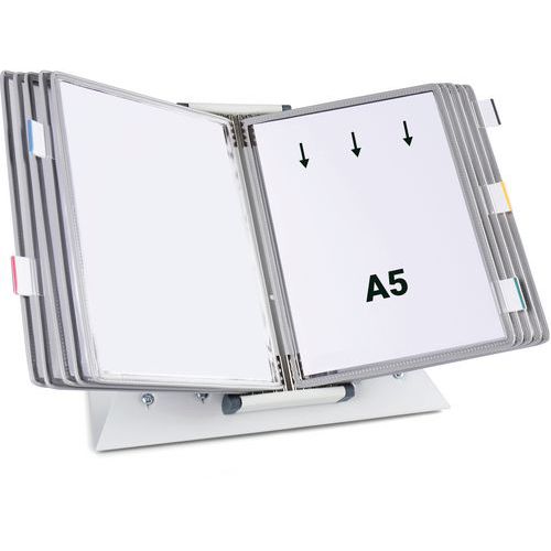 Zichtpanelensysteem wand metaal Tarifold A5 10 zichtpanelen. Metalen lessenaarpresentatiesysteem met zijstoppers en 10 draaibare A4-vakken. Beschermt en ordent al uw veelgebruikte documenten. Geeft directe toegang tot al uw belangrijke informatie. De ideale Lean-managementtool om informatie helpen structureren Uitbreidbaar van 10 tot 30 vakken. Zakken voorzien van originele, exclusieve Tarifold staaldraadtechnologie. Kan indien nodig ook aan de muur worden gemonteerd. Voor gebruik in fabrieken, supermarkten, magazijnen, kantoren, restaurants, winkels, enz. Voor het weergeven van instructies, procedures, adresboeken, catalogi, prijslijsten etc. Circulaire economie: oude geretourneerde tassen worden gerecycled! Zie voorwaarden op de site. Gemaakt in de EU Klantgarantie : 10 jaar