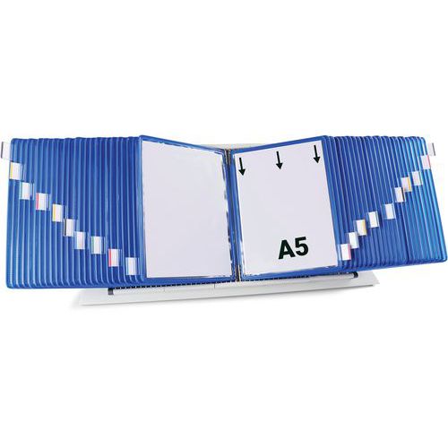 Zichtpanelensysteem wand metaal Tarifold A5 50 zichtpanelen. Metalen lessenaarpresentatiesysteem met zijstoppers en 50 draaibare A5-vakken. Beschermt en ordent al uw veelgebruikte documenten. Geeft onmiddellijke toegang tot al uw belangrijke informatie. De ideale Lean-managementtool om informatie helpen structureren Uitbreidbaar van 40 tot 60 vakken. Zakken voorzien van originele, exclusieve Tarifold staaldraadtechnologie. Kan indien nodig ook aan de muur worden gemonteerd. Voor gebruik in fabrieken, supermarkten, magazijnen, kantoren, restaurants, winkels, enz. Voor het weergeven van instructies, procedures, adresboeken, catalogi, prijslijsten etc. Circulaire economie: oude geretourneerde tassen worden gerecycled! Zie voorwaarden op de site. Gemaakt in de EU Klantgarantie : 10 jaar