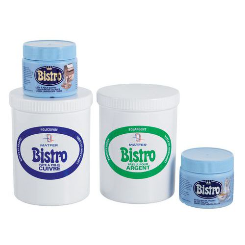Een assortiment poetsmiddel voor het reinigen, opfrissen en polijsten van keukengerei, borden, bestek, zonder uitzondering geprezen door professionals voor de werkzaamheid.