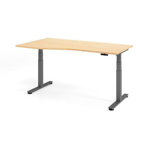 Zit- en stabureau asymmetrisch XDSM18 180x100/80cm. Bureau met versterkte rand rechts of links gemonteerd. Werkhoogte van 63,5 tot 128,5 cm. Progressieve elektrische hoogteverstelling.