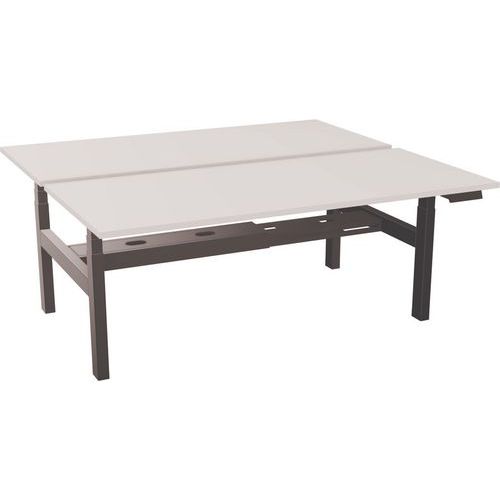 Gemotoriseerd bureau in gedeelde structuur, verstelbaar volgens uw behoeften. Uitgerust met een geïntegreerde dubbele trog om de stopcontacten en kabeldozen te verbergen. Gekozen met voorgeboorde trays waardoor de positionering van 2 optionele luiken mogelijk is.