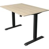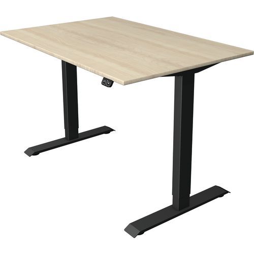 Bureaublad 19 mm dik, gemaakt van E1 melamine gecoat hout met ABS randen (2 mm) Met memory functie T-onderstel, antracietkleurig Elektrisch in hoogte verstelbaar 740 - 1230 mm Zacht aandrijf- en stopmechanisme Laadvermogen statisch 70 kg, Hoogtesnelheid van 25 mm/seconde