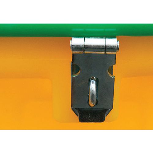 Veiligheid: deksel bevestigd met een buis en vergrendelbaar met een hangslot, tegen diefstal.