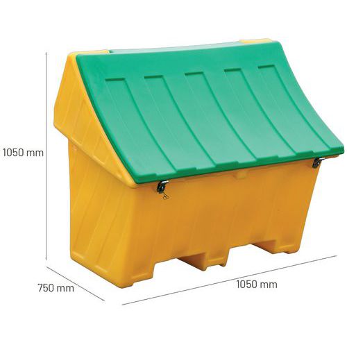 Zout- of zandbak, Totale inhoud: 500 L, Lengtes: 1050 mm, Diepte: 750 mm, Wegstroomopening: nee