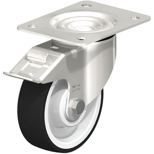 - Roestvaststalen zwaarlast-zwenkwiel, met bevestigingsplaat, met rem 'stop-fix',