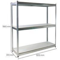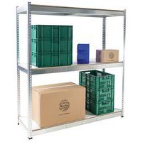 Industriële stelling, eenvoudig en ultrarobuust voor het opslaan van zware artikelen. Gemelamineerd legbord, perfect voor de opslag van kleine losse onderdelen en/of diverse containers. Afwerkingen bestand tegen schokken en diverse omgevingen: verzinkt en grijs/blauw epoxy. Magazijnlegbord, eenvoudige en snelle montage, geen technische hulp of speciaal gereedschap nodig. Modulair, voor het aanpassen van de hoogte van de niveaus aan uw behoeften.