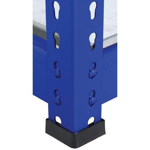 Industriële stelling, eenvoudig en ultrarobuust voor het opslaan van zware artikelen. Dicht stalen legbord, perfect voor een magazijn voor losse onderdelen en/of vette producten. Verzinkte afwerking voor vochtige ruimtes of grijs/blauwe epoxyverf voor droge omgeving. Magazijnlegbord, eenvoudig en zonder technici of specifiek gereedschap te monteren.