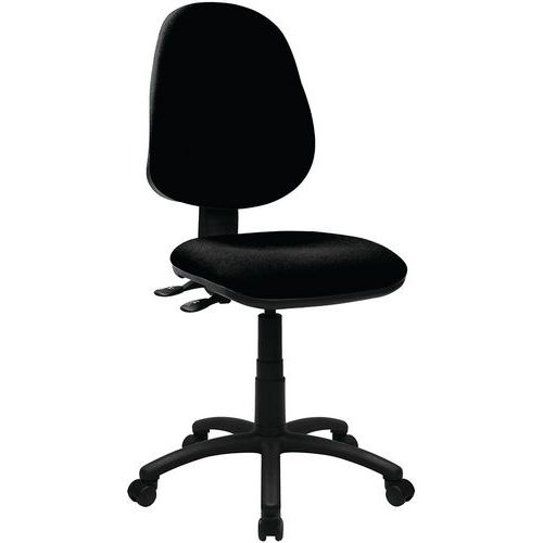 Zwarte bureaustoel - Middelhoge rugleuning - Zitkussen en rugleuning van stof - Twee hendels
