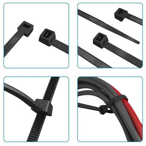 Zwarte nylon kabelbinder, Materiaal: Nylon, Breedte: 4.8 mm, Lengtes: 200 mm, Kleur: Zwart Zwarte nylon kabelbinder, Materiaal: Nylon, Breedte: 4.8 mm, Lengtes: 200 mm, Kleur: Zwart