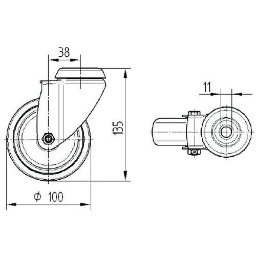 | Productnaam | Zwenkwiel Agila met dubbele rem 100 mm met boutgat_TENTE, Max. belasting: 60 kg, Ø: 100 mm |