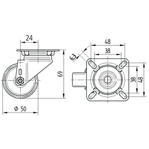 | Productnaam | Zwenkwiel Agila enkel wielrem met plaatbevestiging_TENTE, Max. belasting: 40 kg, Ø: 50 mm |