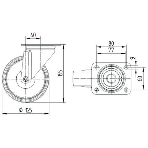 Zwenkwiel Alpha met automatisch 180° fixeer inrichting_TENTE, Max. belasting: 250 kg, Ø: 125 mm