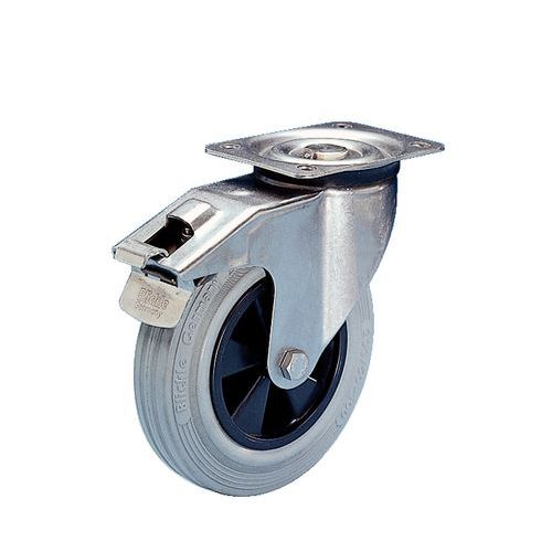 Zwenkwiel met grondplaat en rem - Draagvermogen 50 tot 205 kg - Grijs