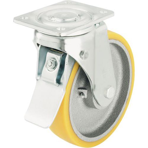 Zwenkwiel met grondplaat geremd - Draagvermogen 350 tot 900 kg