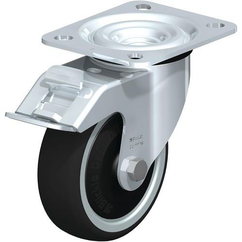 - Plaatstalen zwenkwiel, middelzware uitvoering, met bevestigingsplaat