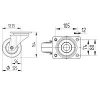 Zwenkwiel, nylon., Max. belasting: 300 kg, Ø: 125 mm, Wiel/Zwenkwielen: Bokwiel/zwenkwiel Zwenkwiel, nylon., Max. belasting: 300 kg, Ø: 125 mm, Wiel/Zwenkwielen: Bokwiel/zwenkwiel
